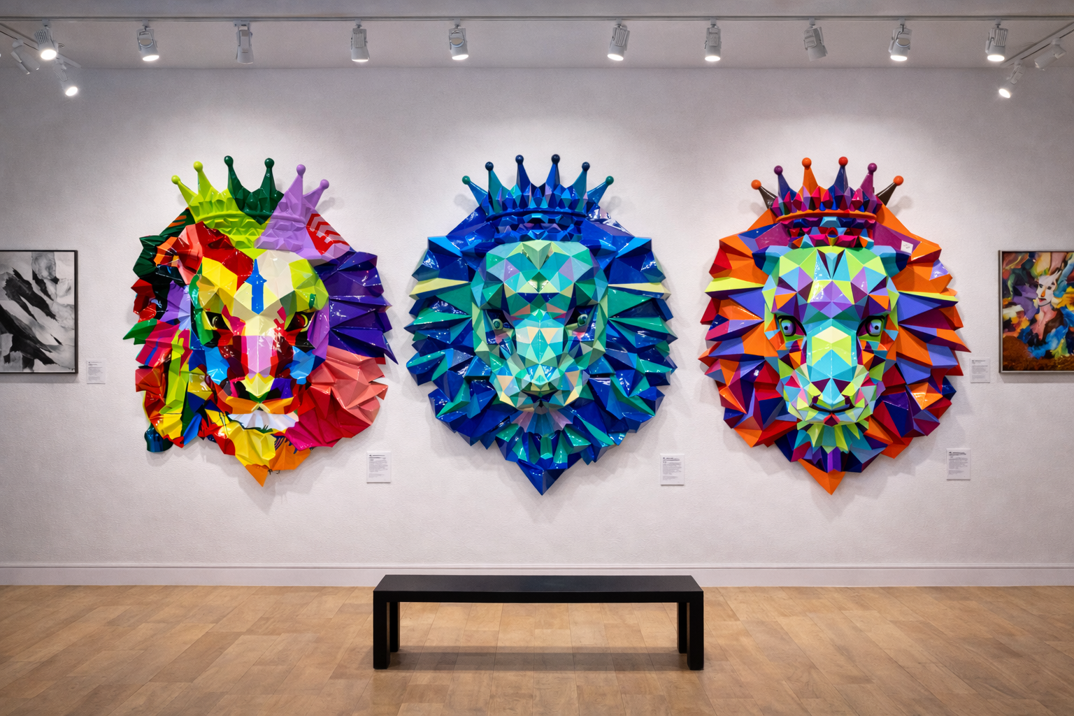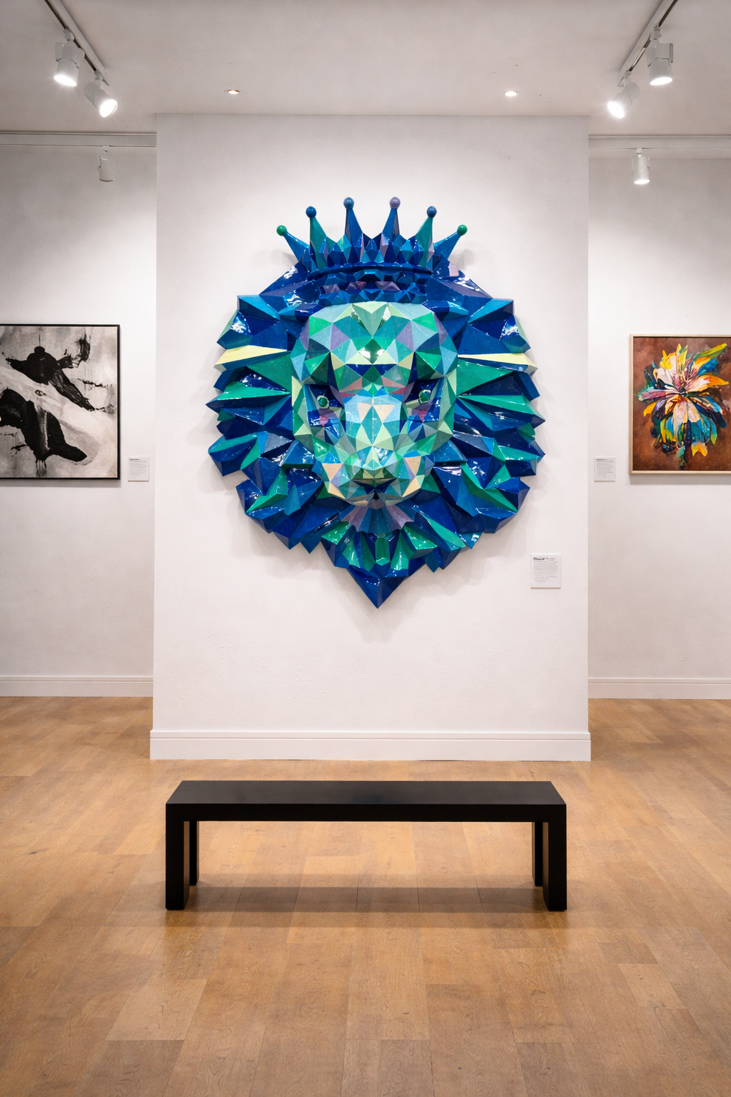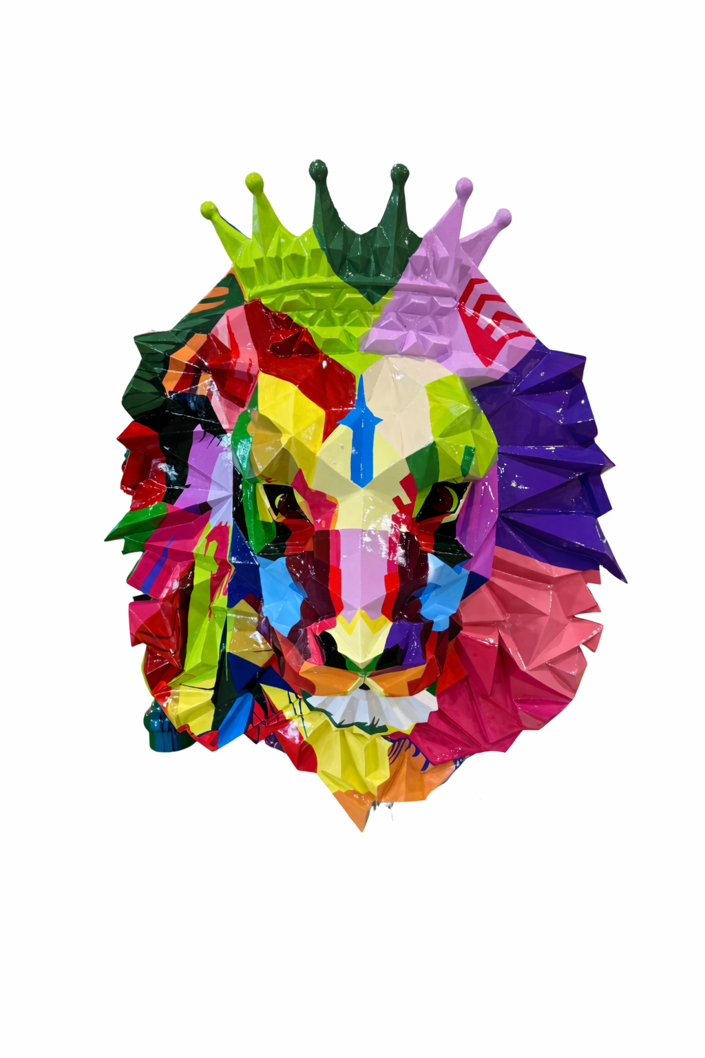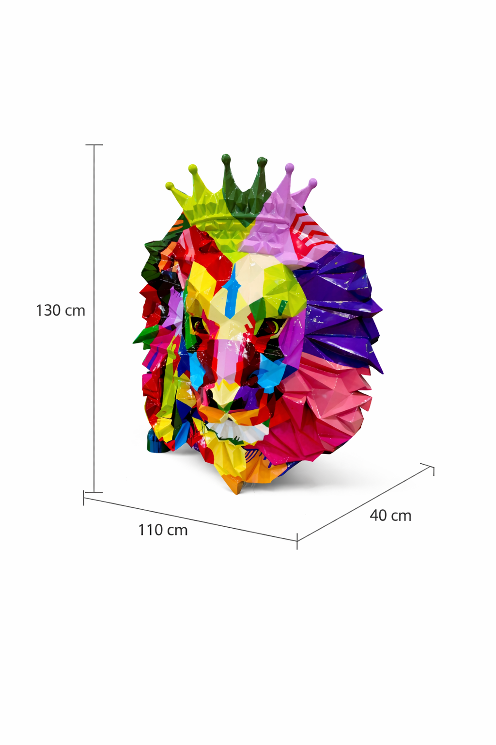 Apportez un impact visuel fort à votre intérieur avec cette tête de lion murale XXL en 3D, une pièce décorative spectaculaire pensée comme une véritable œuvre d’exposition. Réalisée en fibre et résine, puis entièrement peinte à la main, elle se distingue par ses facettes géométriques, ses couleurs intenses et sa couronne emblématique.
